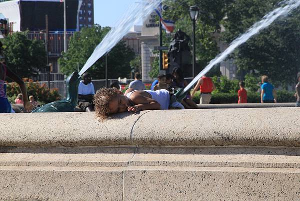 玩水的孩子、逆光的噴泉藝術、日光浴的清涼辣妹、好冰好涼的水霧。